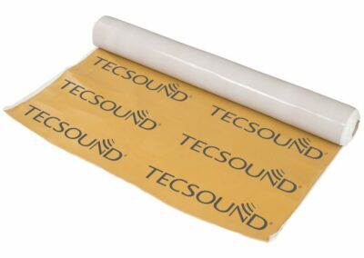 Para insonorizar una pared sin obras pesadas, el producto de referencia para el profesional es la lámina TECSOUND SY GEO. Se trata de una membrana acústica autoadhesiva de alta densidad y base polimérica que actúa como una barrera de masa acústica de alto rendimiento.