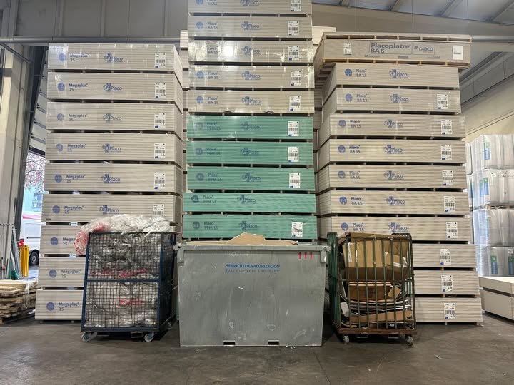 Gestión Integral de PYL: Implementamos un proceso optimizado de recogida, clasificación y triturado de placa de yeso laminado directamente en nuestros centros.